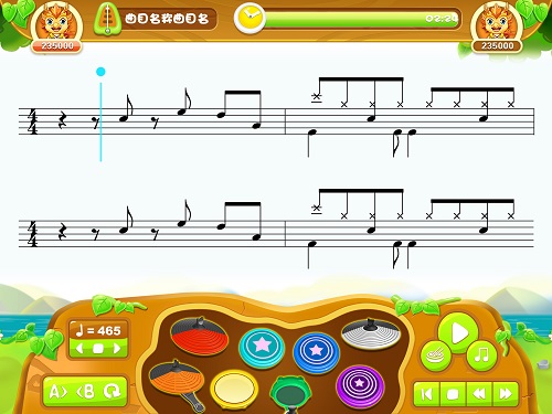 樂斯電鼓課堂包含知識學習、游戲互動、樂曲演奏、智能練習四大環節,通過符合孩子的認知規律的課堂學習,寓教于樂的互動小游戲,耳熟能詳的主題歌曲演奏,合作PK等多種課堂練習模式,讓孩子的音樂學習變得簡單、快樂!