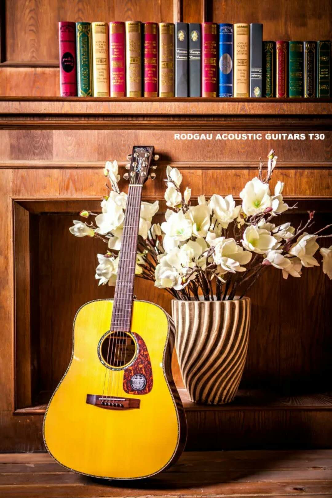 RODGAU羅高T30系列選用的是AA級西特卡云杉做面板。云杉開聲期短,敏感度絕佳,音色共鳴充分,顆粒感強,而玫瑰木音色飽滿,低音渾厚,共鳴極佳。