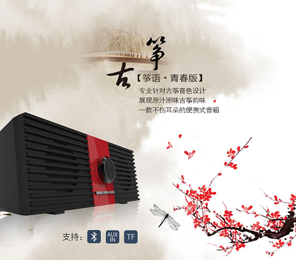一款專業針對古箏音色優化,可完美體現古箏音色、清晰回放古箏韻味、完整展現古箏韻味技法的便攜式藍牙音箱。功能上支持藍牙、AUXIN(有線)、TF卡播放。