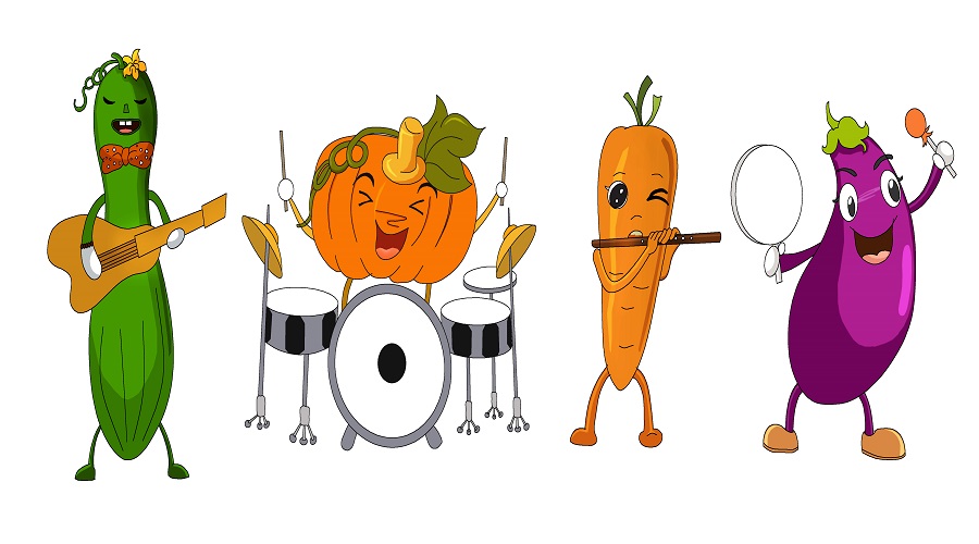 那演奏者手中華麗的樂器、隨風(fēng)飄搖發(fā)出悅耳鈴聲的,動次打次正在歡唱表演的……它們竟然都是水果和蔬菜。