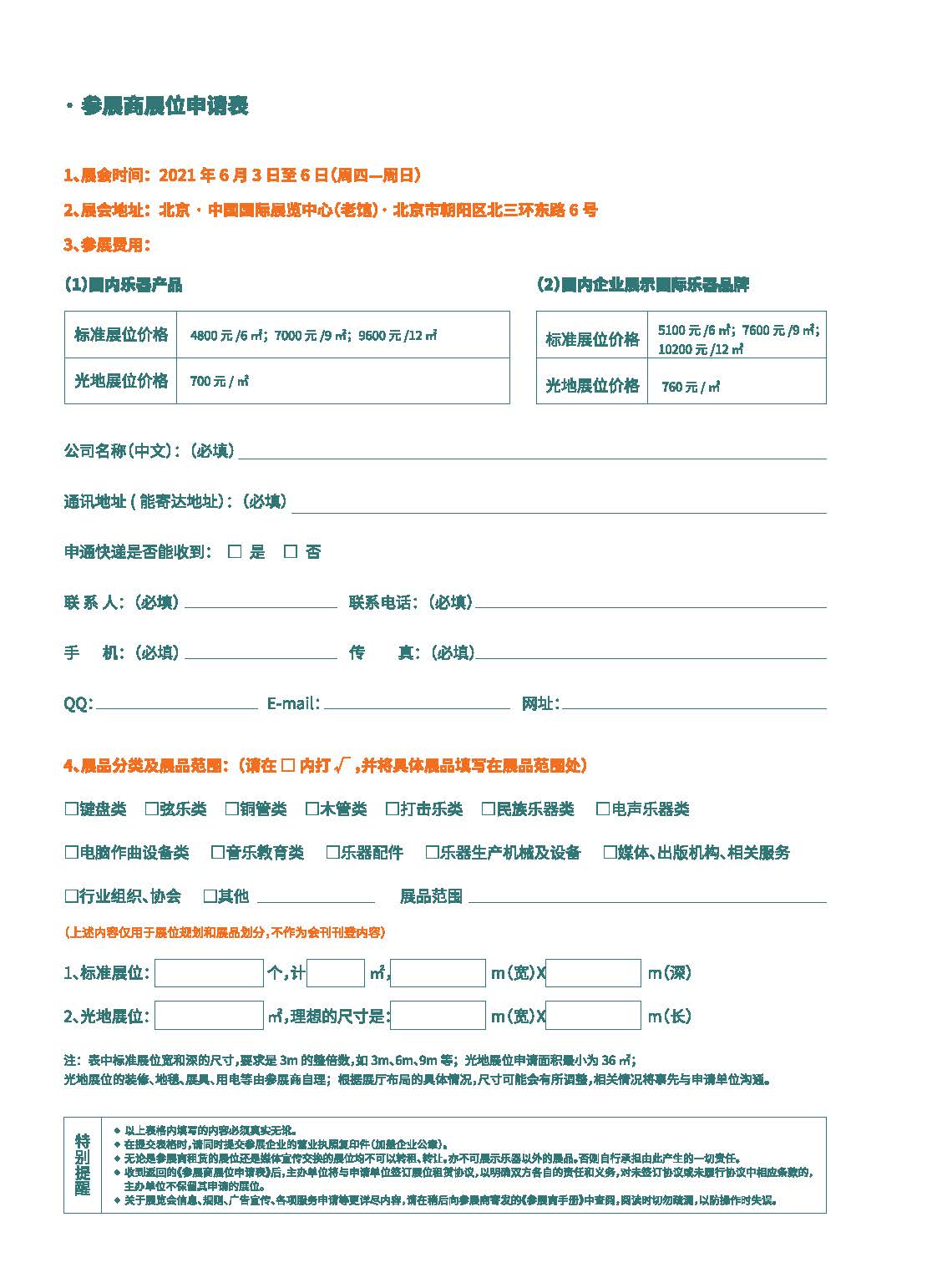 2021年北京國際樂器展,將于2021年6月3日-6日,在中國國際展覽中心(靜安莊館)舉辦。目前,2021年展會的招展工作已經全面啟動!!