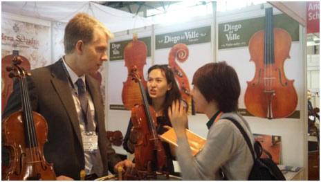 遇到來自德國的Wolfgang Schiele Master Violin Maker先生是在他并不大的展位上,他正在仔細地為一位專業人士介紹他的產品,據介紹他1990年在德國慕尼黑成立了個人提琴制作室,專注于新琴制作與古琴修復。他回望了一眼展駕上的提琴,告訴記者,這里的每把琴都是他親自純手工制作,具有音質完美,敏捷,平衡特性的特點。他說,“北京是中國的首都,文化背景深厚,擁有眾多的音樂專業人士與收藏者,他們是另人期待的。”據介紹,他現在每年參加北京展、上海展,今年也去了廣州展,和別的展會相比,希望北京展下功夫吸引更多的專業觀眾,希望能再提供公共wifi,在網絡時代對于宣傳展會與商家都非常有益。