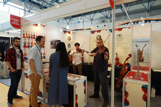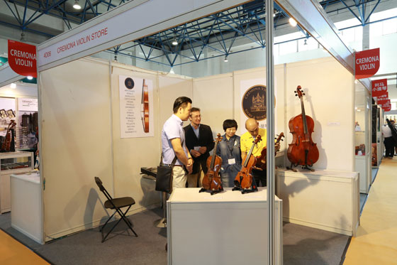 5月25日是第二十五屆中國國際專業音響·燈光·樂器及技術展覽會樂器展的第一天,在提琴展廳內,只見來自世界許多國家、各種型號品類的提琴琳瑯滿目,滿眼都能看到金發碧眼的國外參展商。