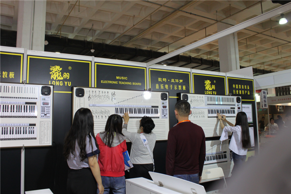 在展館中,不斷傳出的悠揚琴聲引發了記者的好奇心,更有參觀者一試身手,又是彈又是畫。看過去,原來是北京龍羽時代科技有限公司(以下簡稱龍羽)(1A703)展示的龍羽牌音樂電教板。音樂電教板屬于新一代的音樂教學用具,其核心采用數碼電鋼音源,將鍵盤、五線譜、調名、調號、音名等諸多樂理元素匯集于一體;以滑動標尺為紐帶將其巧妙聯系在一起,把聽、唱、奏、讀、寫五大要素集于一身,實現真正的全面樂理教學。該產品有幼教版、普教版、高教版,側重點不同,幼教版、普教版側重于音樂基礎理論教學功能,高教版則重注實操功能。