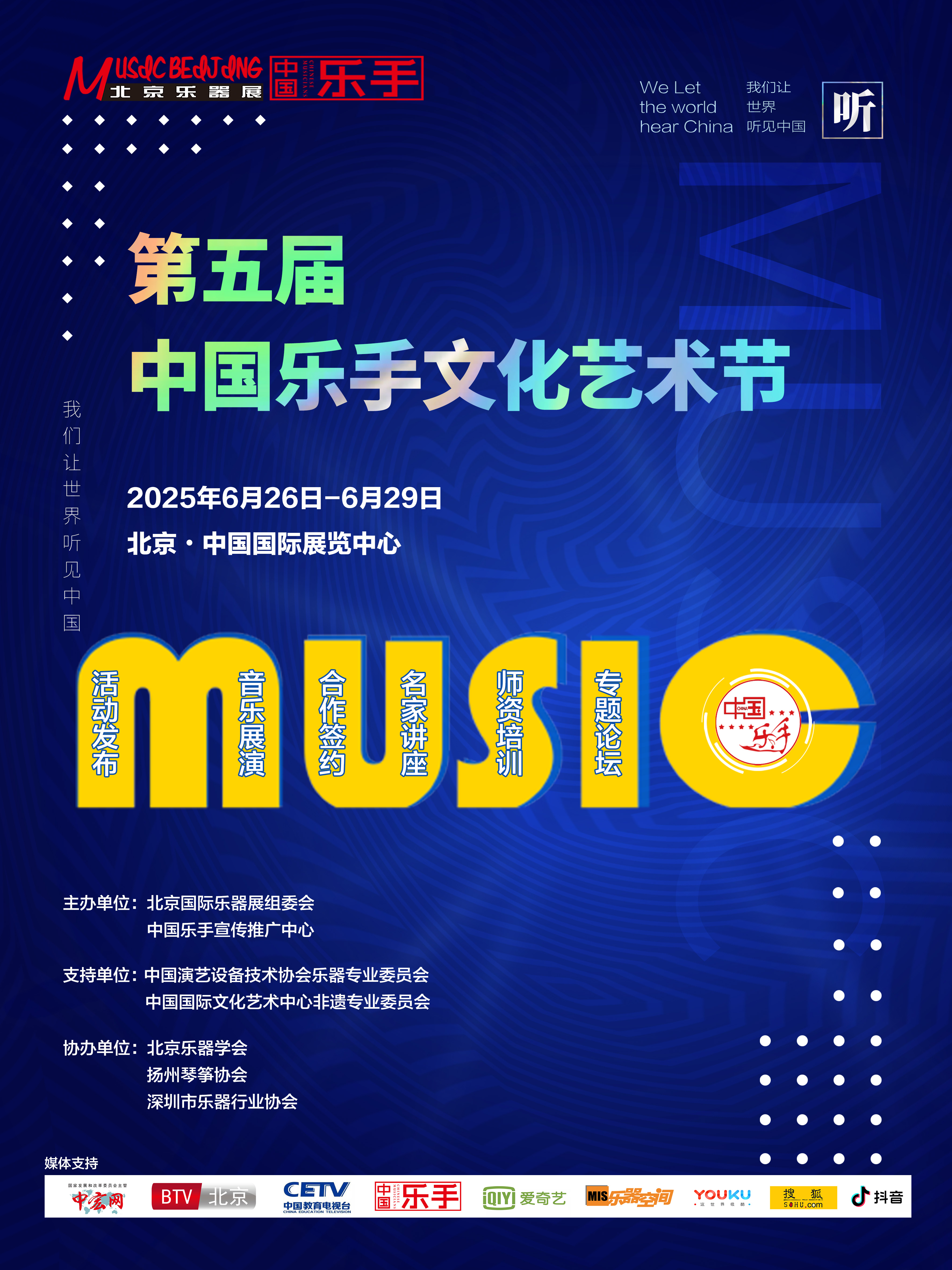 2025年6月26日至29日,第三十二屆中國國際樂器展覽會現場,第五屆中國樂手藝術節即將盛大啟幕。這是一場音樂的盛宴,也是一次文化的洗禮。我們在這里等你,一起見證國樂的力量,感受民族音樂的魅力!讓我們在這個夏天,共同奏響國樂的最強音!