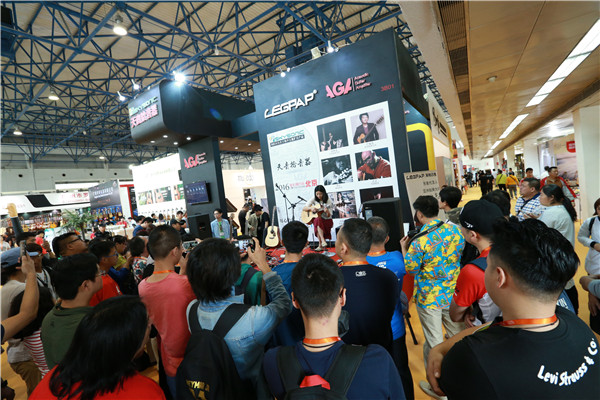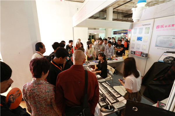 電子樂器展位被觀眾層層包圍,科技革新讓樂器更加輕盈