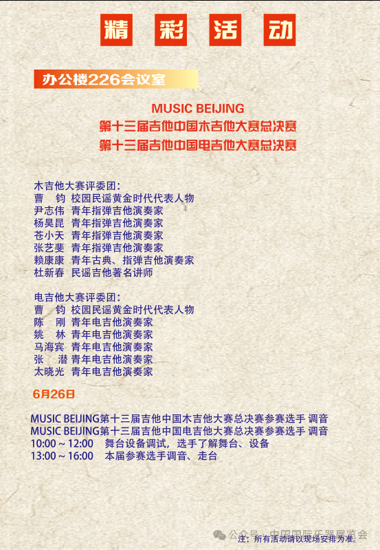 每年北京國際樂器展同期都會舉辦各種形式的系列活動,已逐漸形成了品牌化,今年展會期間也將舉辦涵蓋高端論壇、大師講堂、演奏技術解析、交流展演、器樂大賽等品牌活動,內容將突出藝術與技術、與教育、與生活的融合,以促進樂器制造業和應用領域的科技發展。